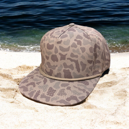 Custom Coastal Beach Creeper Duck Camo Five Panel Rope Hat