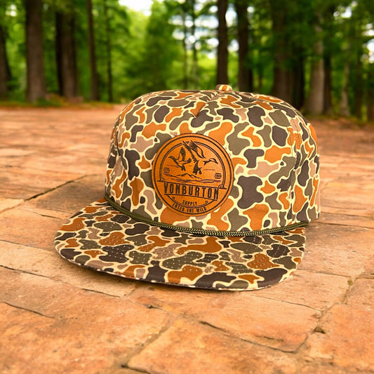 Custom Vintage Duck Camo 6 Panel Leather Patch Hat Aspen