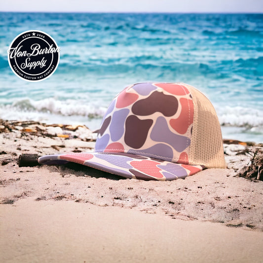 Coral Tide Creeper Duck Camo Five Panel Trucker Hat